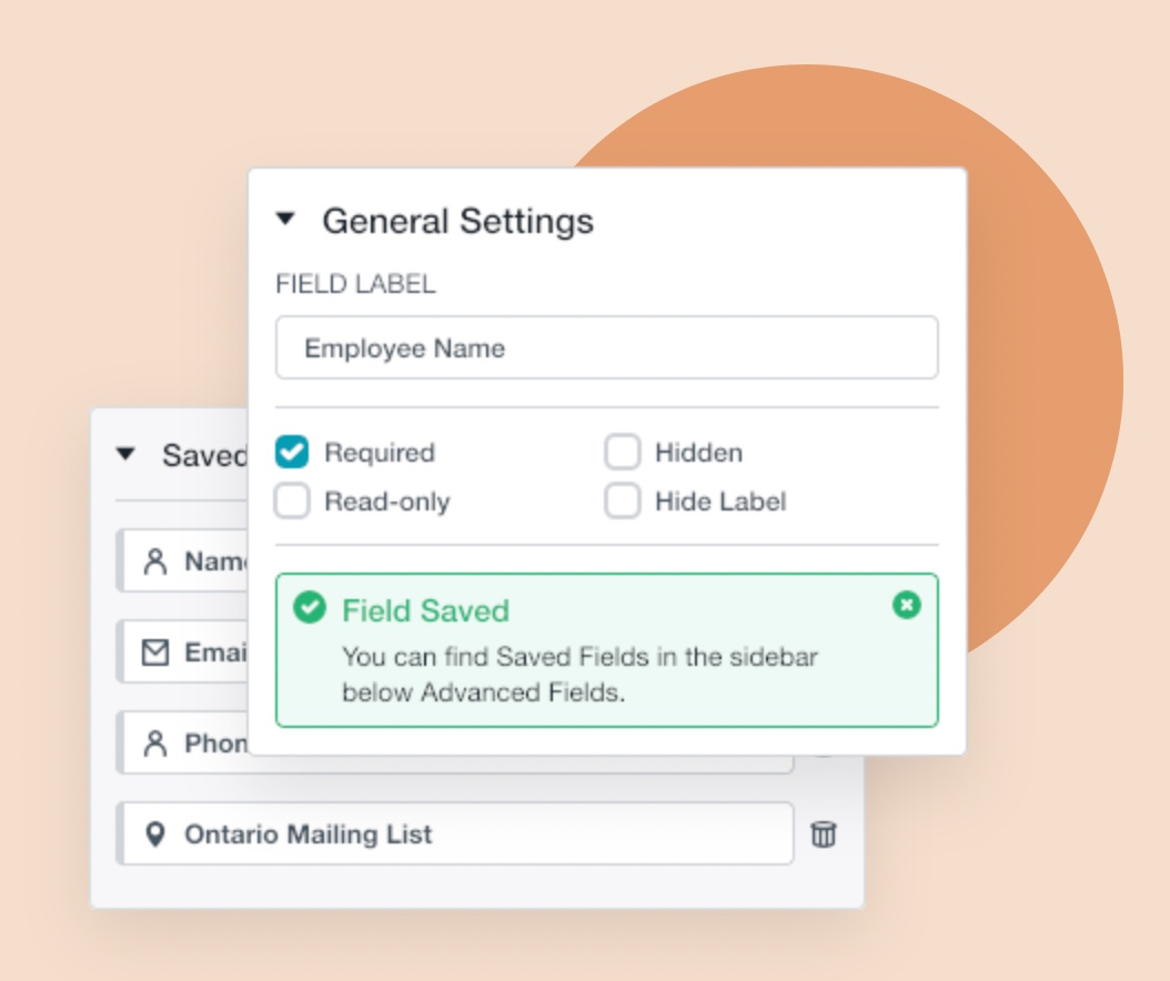 Saved Fields Even with multiple users, remain consistent while simplifying the form-build process by saving certain fields that you anticipate using repeatedly. Set up your field settings, and they will automatically be available to every user on your account.
