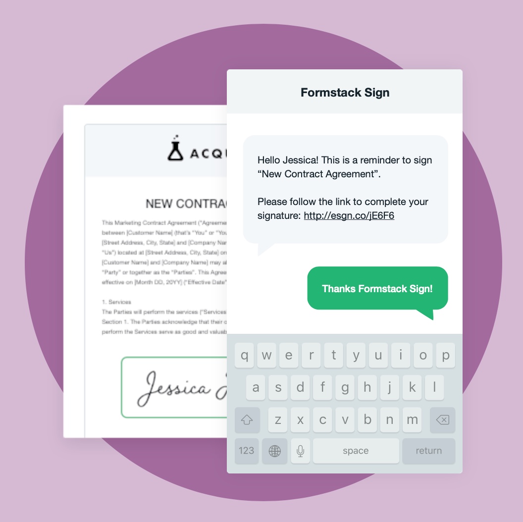 SIGN Designed to move business transactions forward, Formstack Sign enables organizations to gather legally-binding signatures through several different channels, including tablets, smartphones, and even text messages. Files of any type can be converted into a singable document, or you could leverage the Open API to pair with your favorite document generation application (Formstack Documents, perhaps) while ensuring safe and strong security for your data.